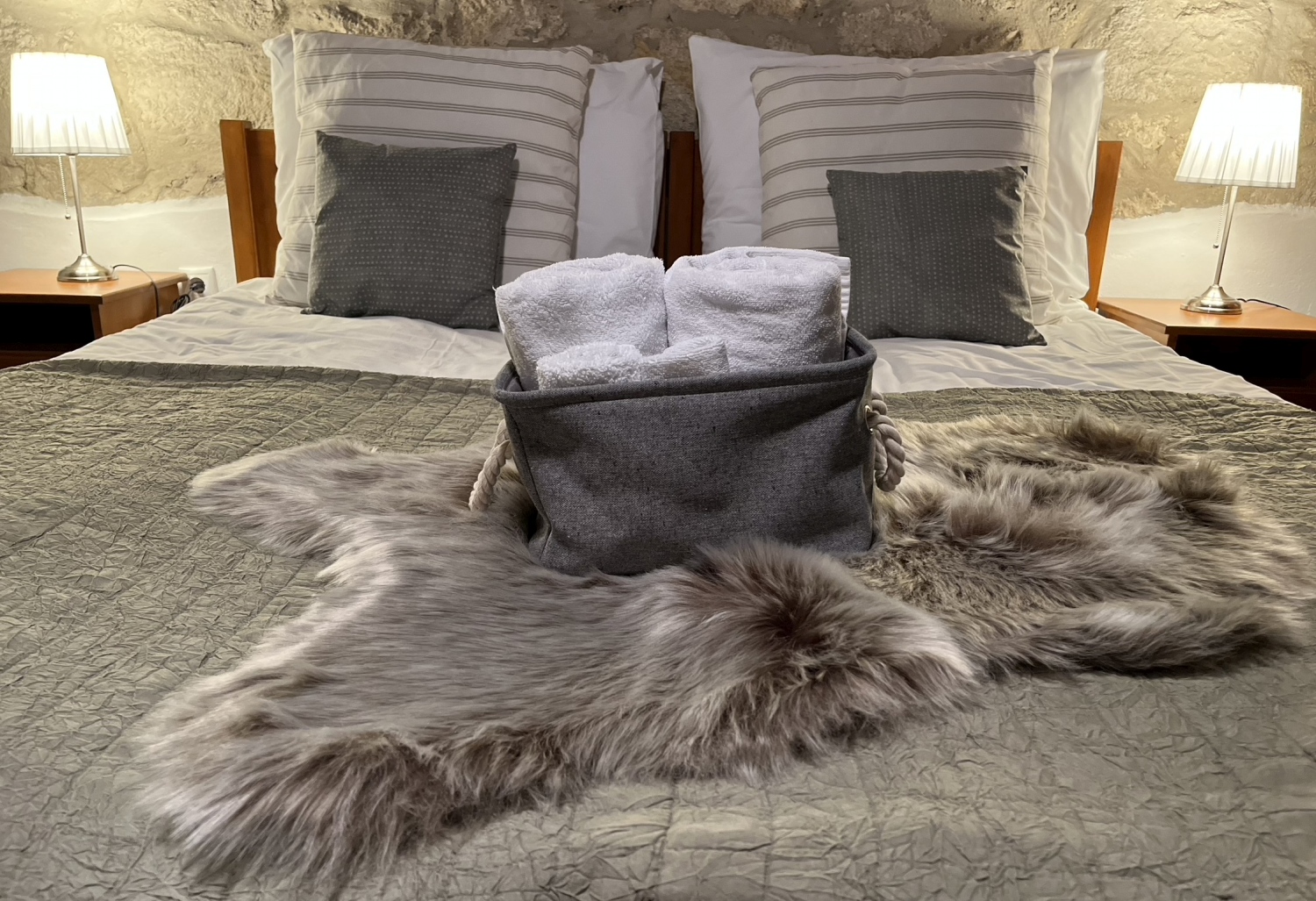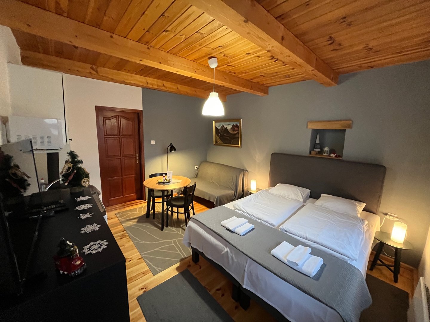 Két hálószobás apartman tágas étkező-konyhával és fürdőszobával. A nagyobbik szobában 4, a kisebbikben 2, összesen legfeljebb 6 fő elhelyezésére van lehetőségünk a mintegy 55 négyzetméter alapterületű lakrészben.