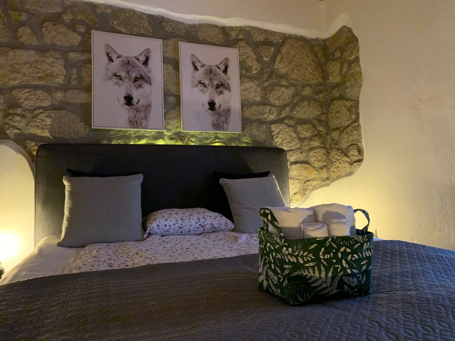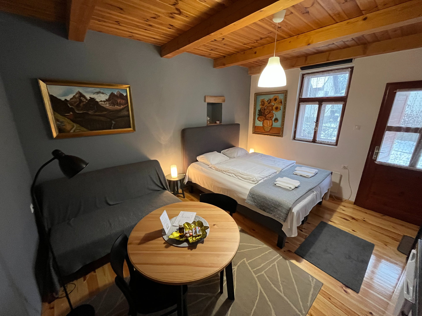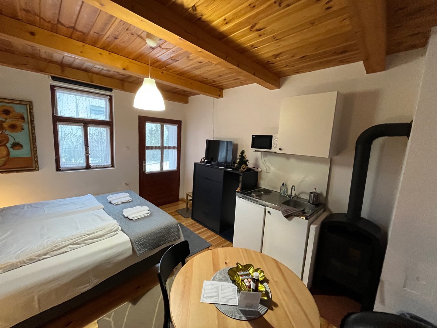 Vendégházunk kerthez közelebb eső végében található a külön bejárattal és önálló fürdőszobával rendelkező 15nm-es, 2+1 férőhelyes szobánk, melyben egy franciaágy (dupla ágy) és egy kinyitható kanapé található. A kinyitható kanapé egy vagy két gyermek számára biztosít megfelelő elhelyezkedést.