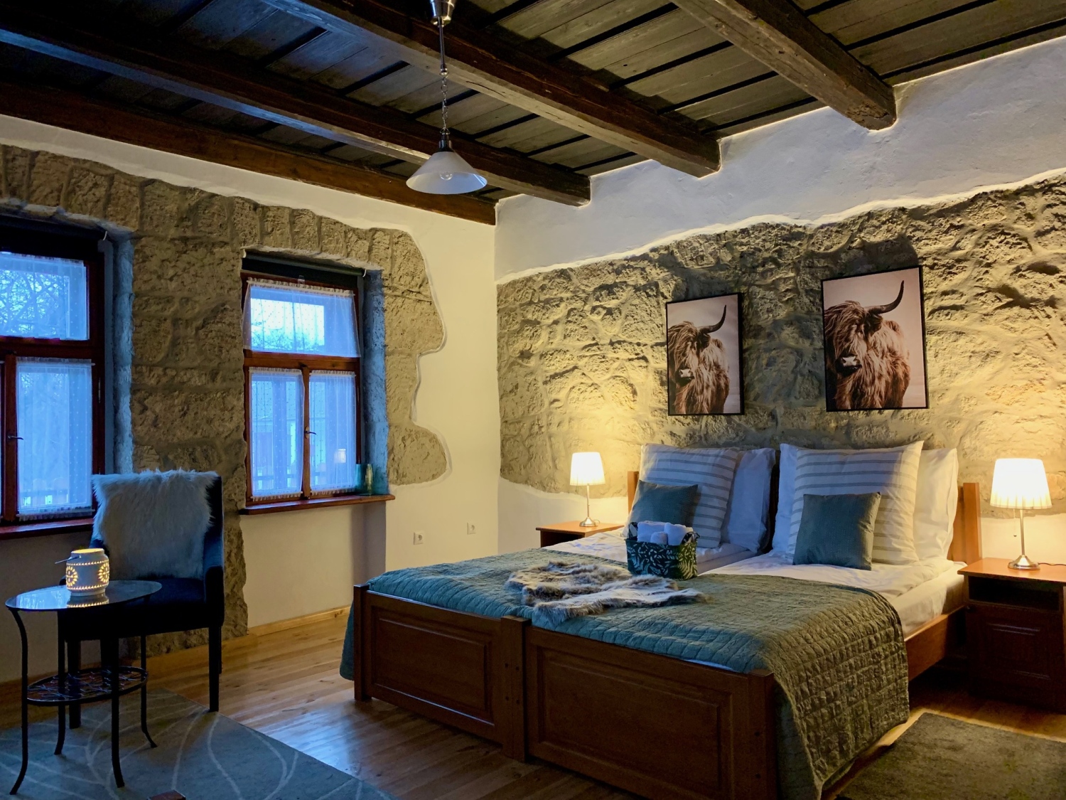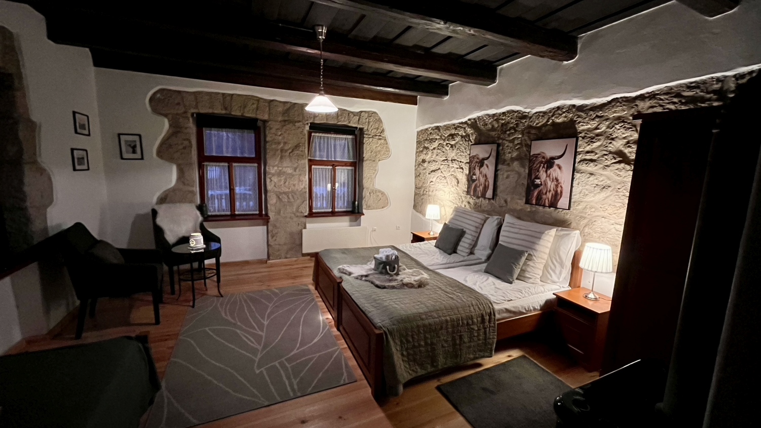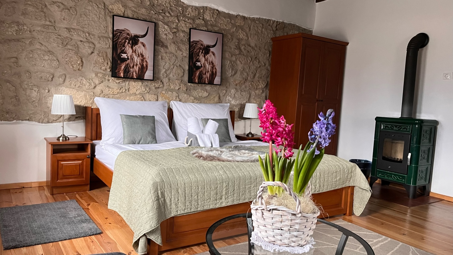 A hagyományos és korszerű megoldásokból, valamint az egyedi ötletek keveredéséből olyan sajátos, bájos hangulat alakult ki, hogy úgy döntöttünk, ezt másokkal is megosztjuk. Így alakult ki a Vitamin B63 Vendégház, mely egy két hálószobás apartmannal, és egy kisebb külön bejáratú szobával várja vendégeit. A szobákba új, egyedi bükkfa ágyak és szekrények kerültek, a konyha szintén bükkfa bútort kapott.