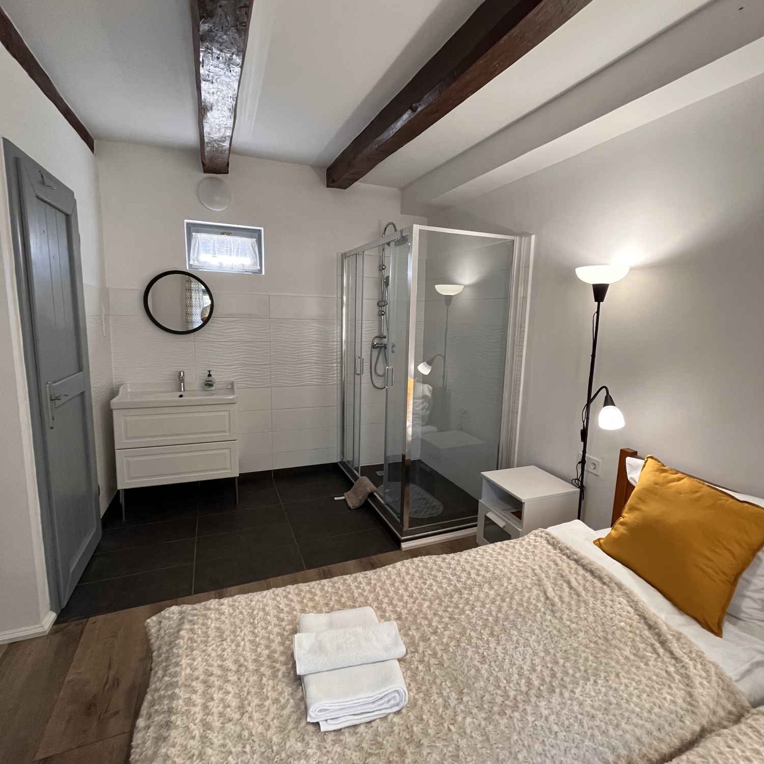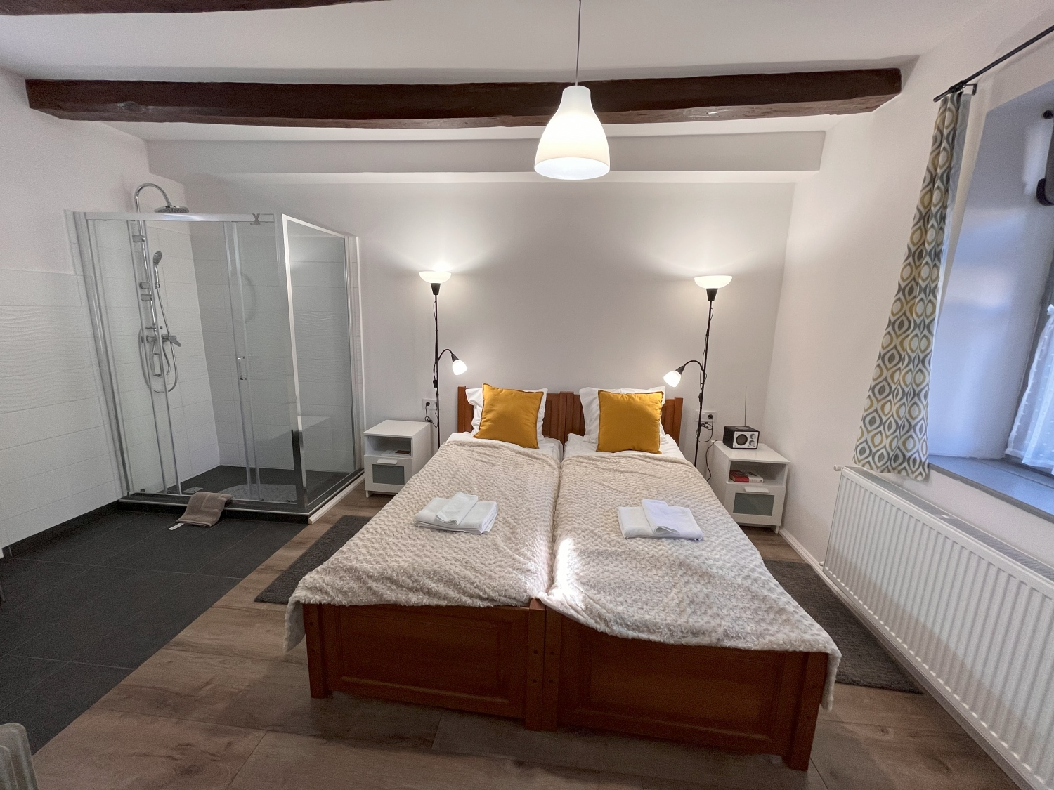 Apartmanunkban két hálószoba és egy konyha-étkező található. Mindkét szoba saját fürdővel rendelkezik.